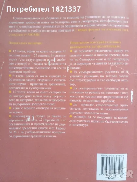 Тестови задачи за матура БЕЛ → Обява 47976116