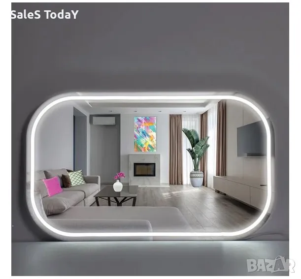 Правоъгълно огледало със заоблени ръбове и led neon контур 5W, 1A.