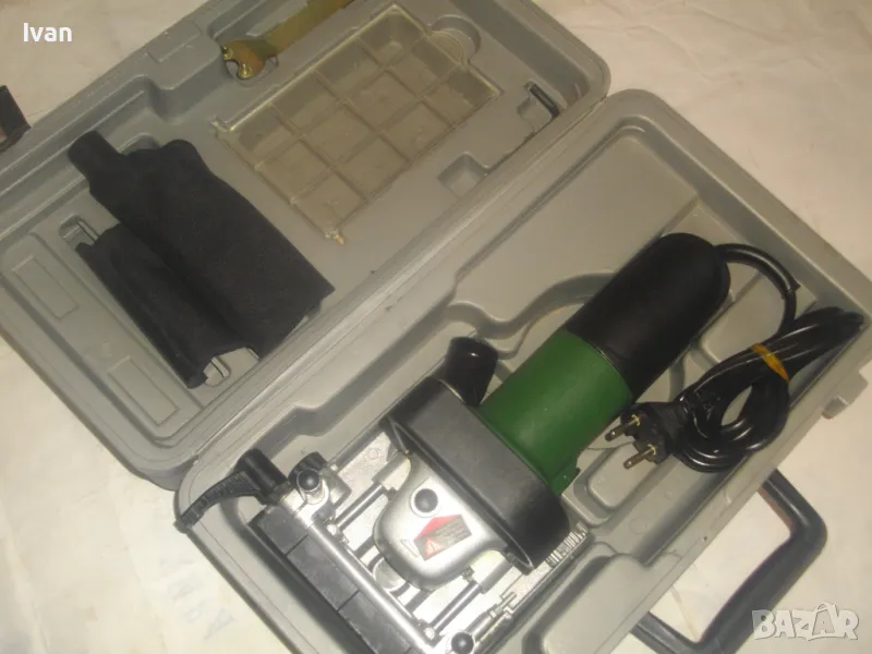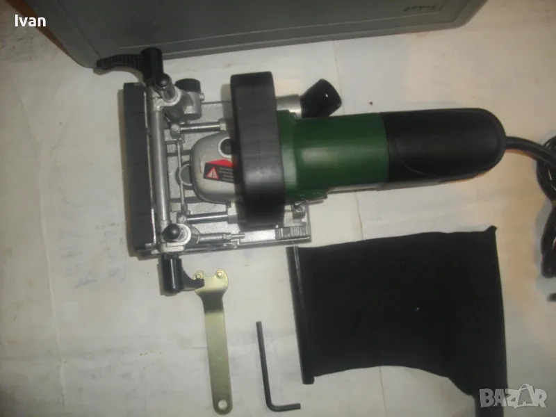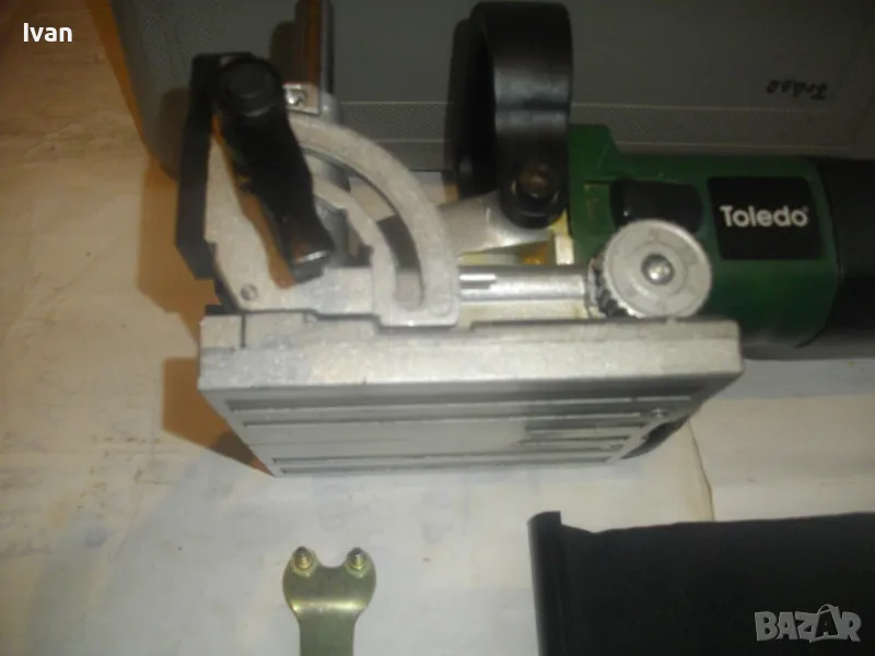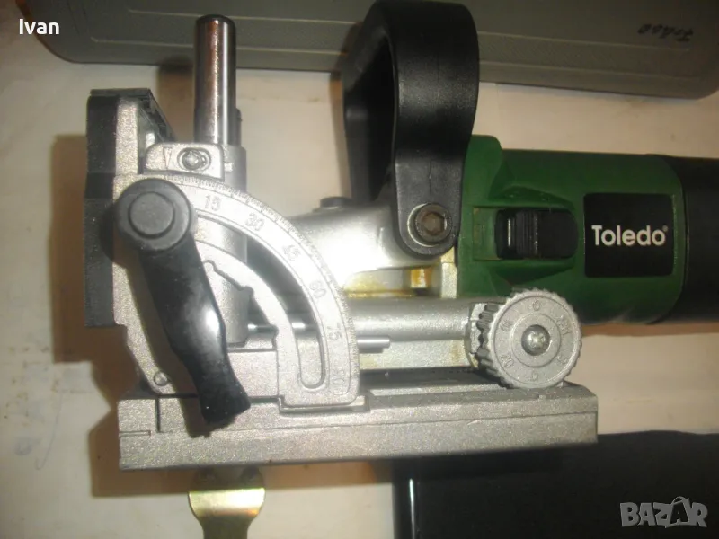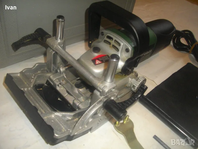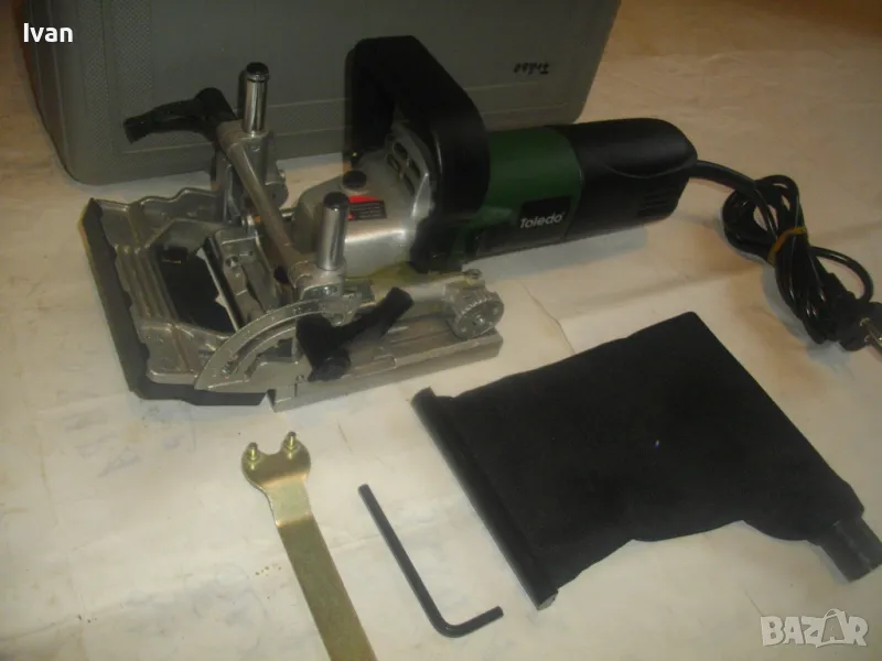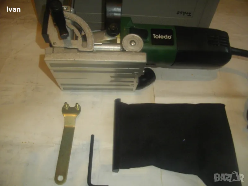 Нова нидерландска холандска бисквит машина бисквит фреза за сглобки в мебелното производство и индустрия посредством бисквити - цена 459 лв. Марка и модел TOLEDO TBJ-710. Професионална марка и професионална машина. Производител и страна производство маркирани - TOLEDO Swolle NL. Производство оригинално 2004 г. Машината е съвсем нова, неизползвана и неупотребявана. Пробвана за няколко минути, в отлично състояние. Без забележки. Мощност на мотора - 710 вата, скорост 11 000 об/мин. Диск - ф 100 мм. Регулация дълбочина сглобка 0-20 мм. Ъгъл регулация на сглобка канал с диска 0-90 градуса. Горна масивна дръжка. Страничен пусков ключ. Плот алуминиев изцяло. Дълбичина на срез канал с диск - 6 положения. Външен конектор прахоуловител накрайник за скачване с торба за прах или строителна прахосмукачка. Налична е оригиналната торба за прах към машината. Наличен оригиналният ключ за смяна на фрезов диск. Наличен оригинален шестостен ключ шестограм за болтовете на машината. Наличен оригиналния куфар на машината с вградени вложки. Бисквитки към машината не са налични. При голямо желание мога да дам десетина бисквитки от други фрези. Размери на куфара 380 х 220 х 160 мм. Тегло машина -3,9 кг, тегло с куфара - 5,0 кг. Цена - 459 лв.