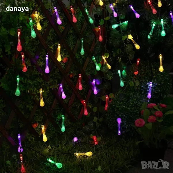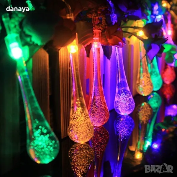 LED декорация с многоцветни капчици, верига от 20 светодиода със соларно зареждане, 4 метра.