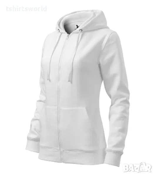 Нов дамски суичър с ЦИП и качулка в бял цвят