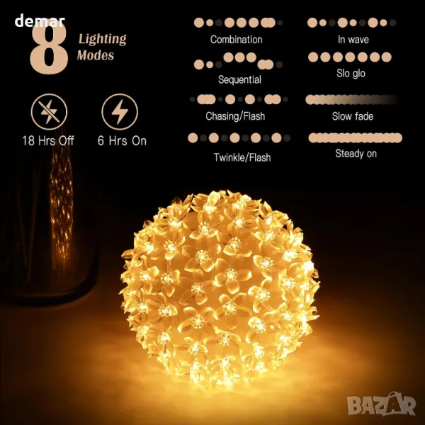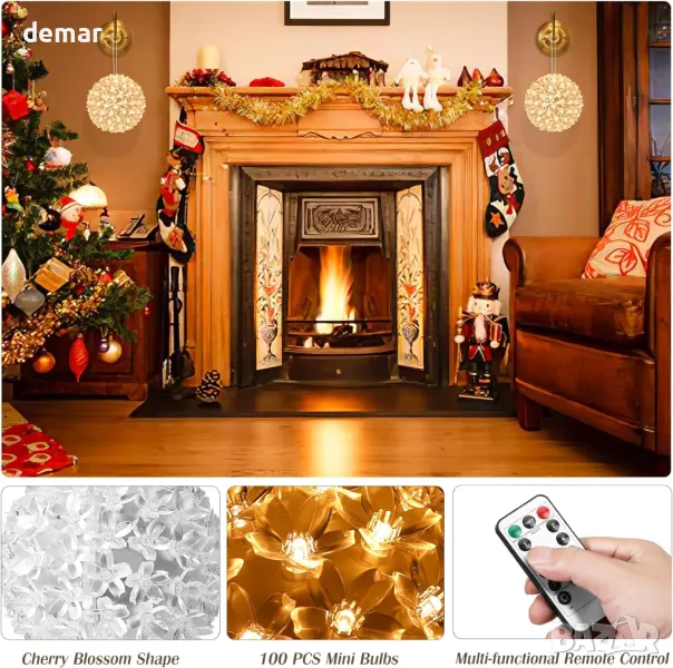 Тези коледни LED светлини разполагат с две 14-сантиметрови светещи топки с форма на черешов цвят, всяка украсена със 100 топли бели мини крушки за уютно и романтично сияние. Захранвани от USB и оборудвани с 30 см кабел за окачване, те са лесни за инсталиране и са идеални за различни настройки, от всекидневни до партита и сватби. Светлините включват удобна функция за 6-часов таймер за автоматична енергоспестяваща работа. Перфектни за празничен декор или като обмислени подаръци, тези универсални светлини добавят чар към всеки повод.