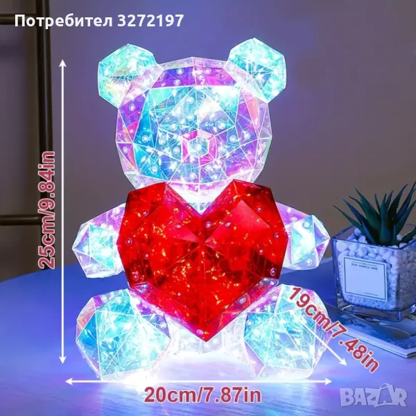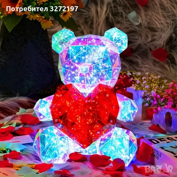 Ръчно изработена USB Великолепна светеща LED мечка, държаща червено сърце