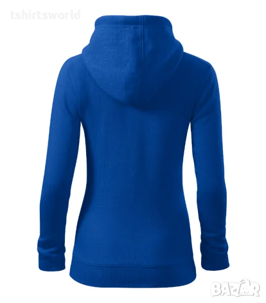 Нов дамски суичър с ЦИП и качулка в син цвят
