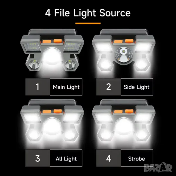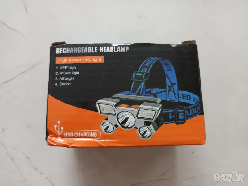 Мощен LED фенер, челник 5 LED светлини, акумулаторен фенер за глава → Обява 47978904