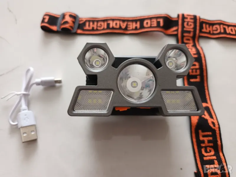 Продавам нов челник с 5 броя LED светлини. Възможност за избиране броя на светлините, които искате са светят (една, две, три или 5 свтлини), SOS мигаща светлина. USB зареждане! С вградена акумулаторна батерия, която се зарежда се кабел, който е включен в комплекта. Много лек и удобен!