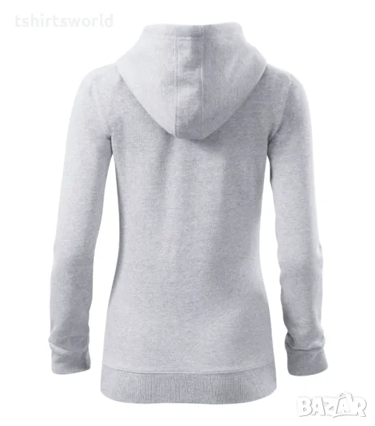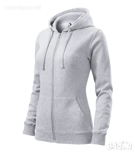 Нов дамски суичър с ЦИП и качулка в цвят светлосив меланж
