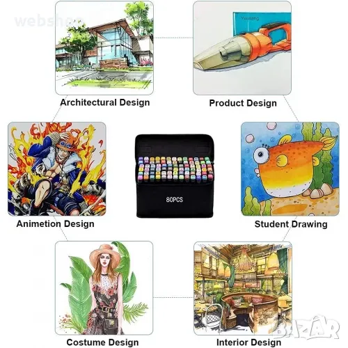 Размер L - Комплект от 80 броя двустранни маркери - 23.90лв