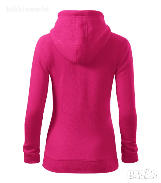 Нов дамски суичър с ЦИП и качулка в цвят циклама
