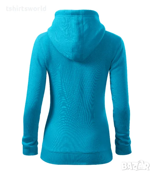 Нов дамски суичър с ЦИП и качулка в тюркоазено син цвят