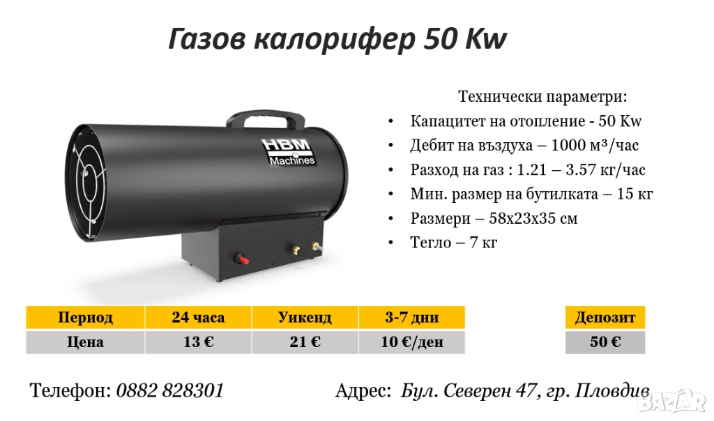 Газов калорифер 50 Kw под наем → Обява 47979292