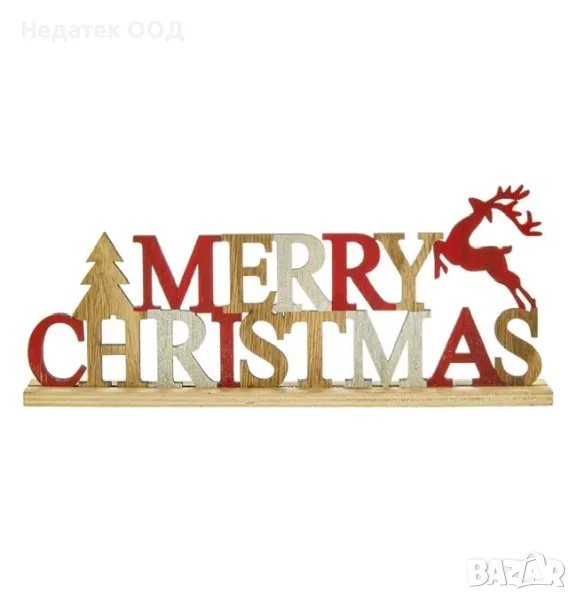 Коледна декоративна дървена табела Весела Коледа с елени.Дайте на къщата най-празничния образ!