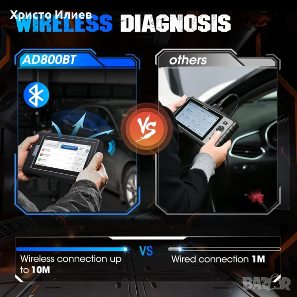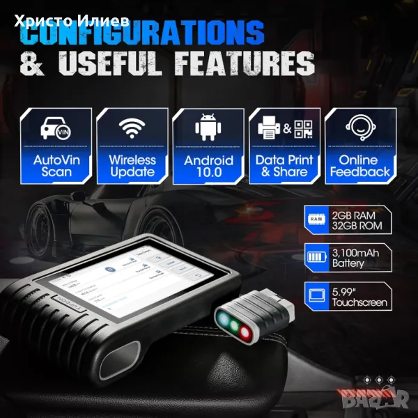 БЕЗЖИЧНО И AUTOVIN: безжична диагностика с обхват от 33 фута (10 м) с помощта на Bluetooth 4.0 VCI ключ. Този OBD2 скенер използва технологията AutoVIN, за да осигури бърза и точна идентификация на автомобила с едно докосване, без ръчно въвеждане на данни за марката, модела и годината на автомобила. AutoVIN може да не работи на всички автомобили, но е налично ръчно въвеждане на VIN.