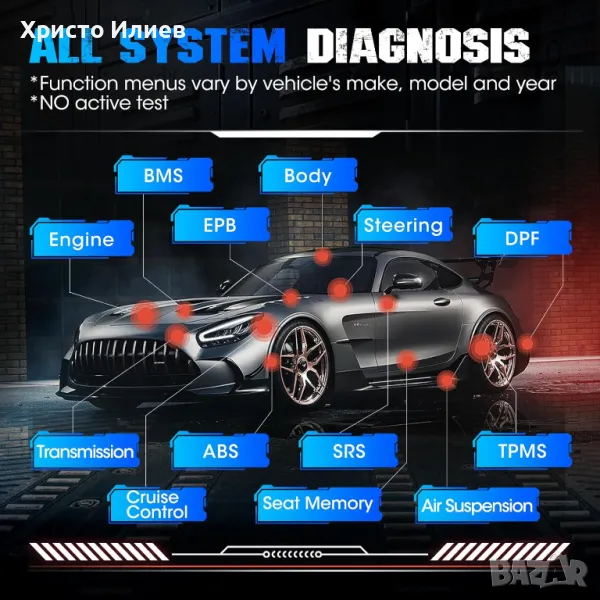 ВСИЧКИ НАЛИЧНИ ДИАГНОСТИКИ НА СИСТЕМАТА: анализирайте ECM, трансмисия, ABS, въздушна възглавница, SAS, DPF, EVAP, TPMS, BMS, EPB и други бордови системи с диагностика на ниво OE. Изтеглете и изчистете кодове, изключете предупредителните светлини, проверете данните от стоп-кадъра и прегледайте поток на живо в подробен текст или формат на обединена графика. Това не е двупосочен скенер, не е наличен активен тест.