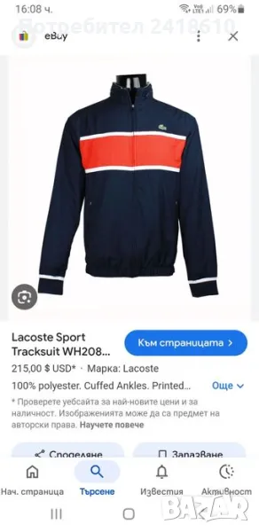 Lacoste Sport Tracksuit Mens Size 3 - S ОРИГИНАЛ! Мъжки Екип / комплект!