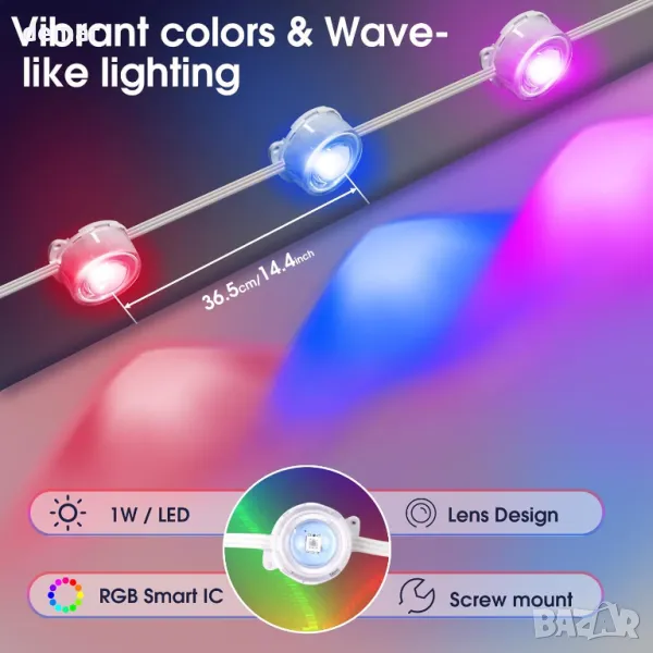 Тези подобрени външни светлини разполагат с размер Ø40 и RGBIC светодиоди, предлагащи живи цветове и динамични ефекти. С 65 предварително зададени сцени и режим на синхронизиране на музика, те създават оживена атмосфера за всеки повод. Управлявайте множество устройства чрез приложението или дистанционно, с Bluetooth/WiFi свързаност и съвместимост с Alexa/Google Assistant. Функцията на таймера позволява планиране, докато водоустойчивият дизайн IP67 гарантира издръжливост за използване на открито, което ги прави идеални за домашен декор, партита и събития.
