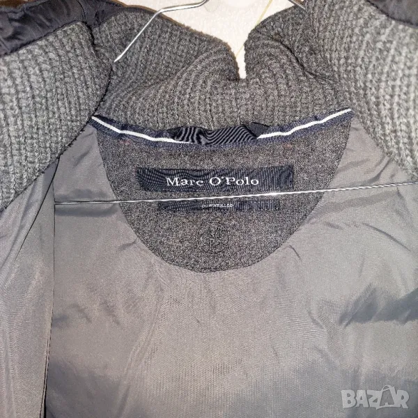 Дамско ватирано палто от Marc O'Polo . Редовна форма. Закопчава се с двупосочен цип. Стояща яка и ръкави, гарнирани с плетена лента. Сваляща се качулка, гарнирана с изкуствена кожа, закопчана с копчета.