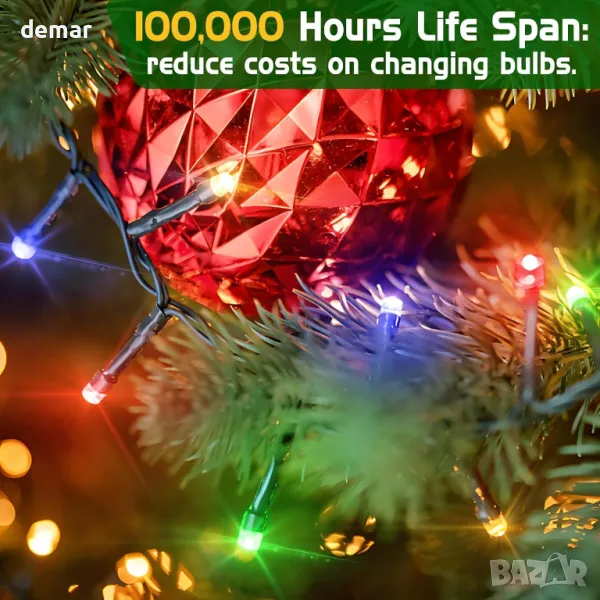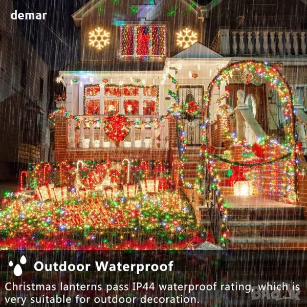 Тези многоцветни приказни светлини са идеални за празнични поводи и ежедневна употреба, подобрявайки външните пространства с елегантност и чар. С регулируеми нива на яркост (100%, 75%, 50%, 25%) и три настройки на таймера (6/18 часа, 8/16 часа), те предлагат удобство и енергийна ефективност. С IP44 водоустойчив рейтинг, те издържат на различни метеорологични условия за надеждна употреба на открито. 8-те режима на осветяване предоставят разнообразни опции за създаване на желаната атмосфера, докато издръжливата тъмнозелена жица се слива безпроблемно със зеленината, запазвайки фокуса върху светещите светлини.