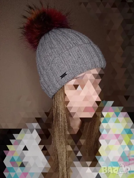 Liu Jo Дамска зимна плетена шапка с пухче от естествена кожа → Обява 47983971