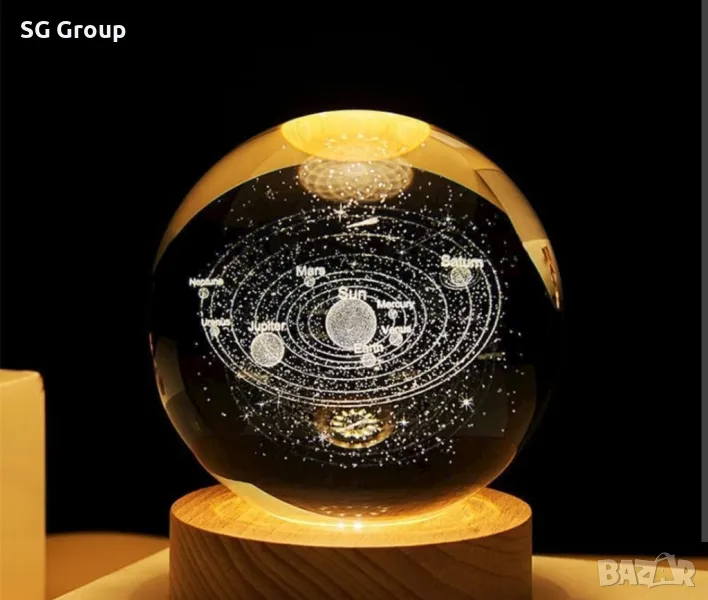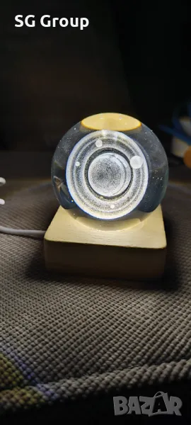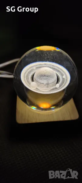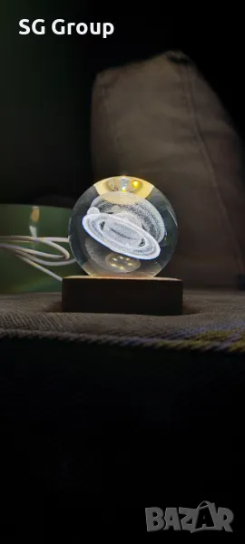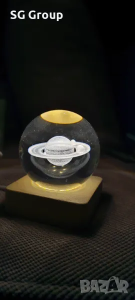 нощна лампа Caтypн и нейните луни.Глобуса е изработен от висококачествен кристал. Перфектният подарък, който носи усещането за магия във Вашия дом! Тази уникална лампа не само визуализира caтypн в трите измерения, и нейните луни,благодарение на релефната повърхност, но и предоставя възможността да се наслаждавате на нейната светлина в разнообразие от цветове.