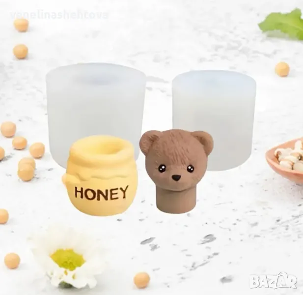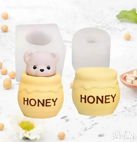 3D плюшено мече в гърне буркан с мед Силиконов молд форма за декорация → Обява 47984616