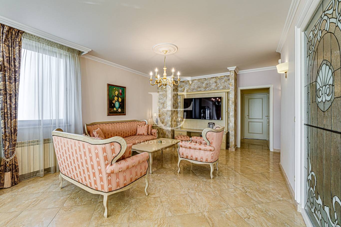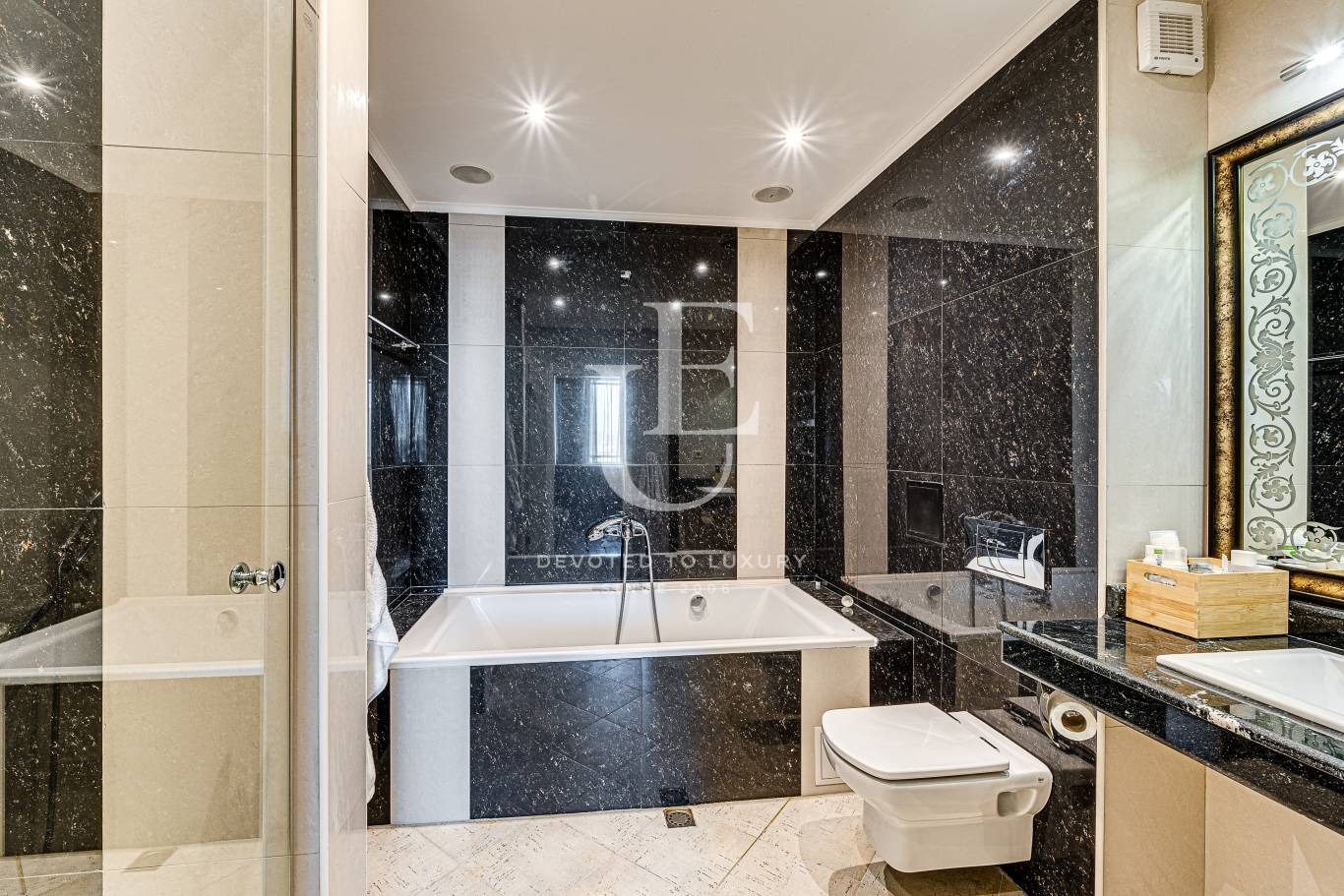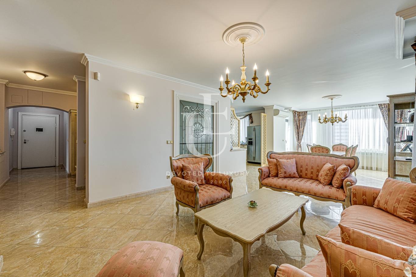 Имотът се намира в нова сграда с модерни и добре поддържани общи части, предлага се напълно обзаведен и оборудван. Апартаментът е с разгъната застроена площ от 201 кв.м. и се намира на 7-ми етаж от общо 13, с южно и северно изложение.