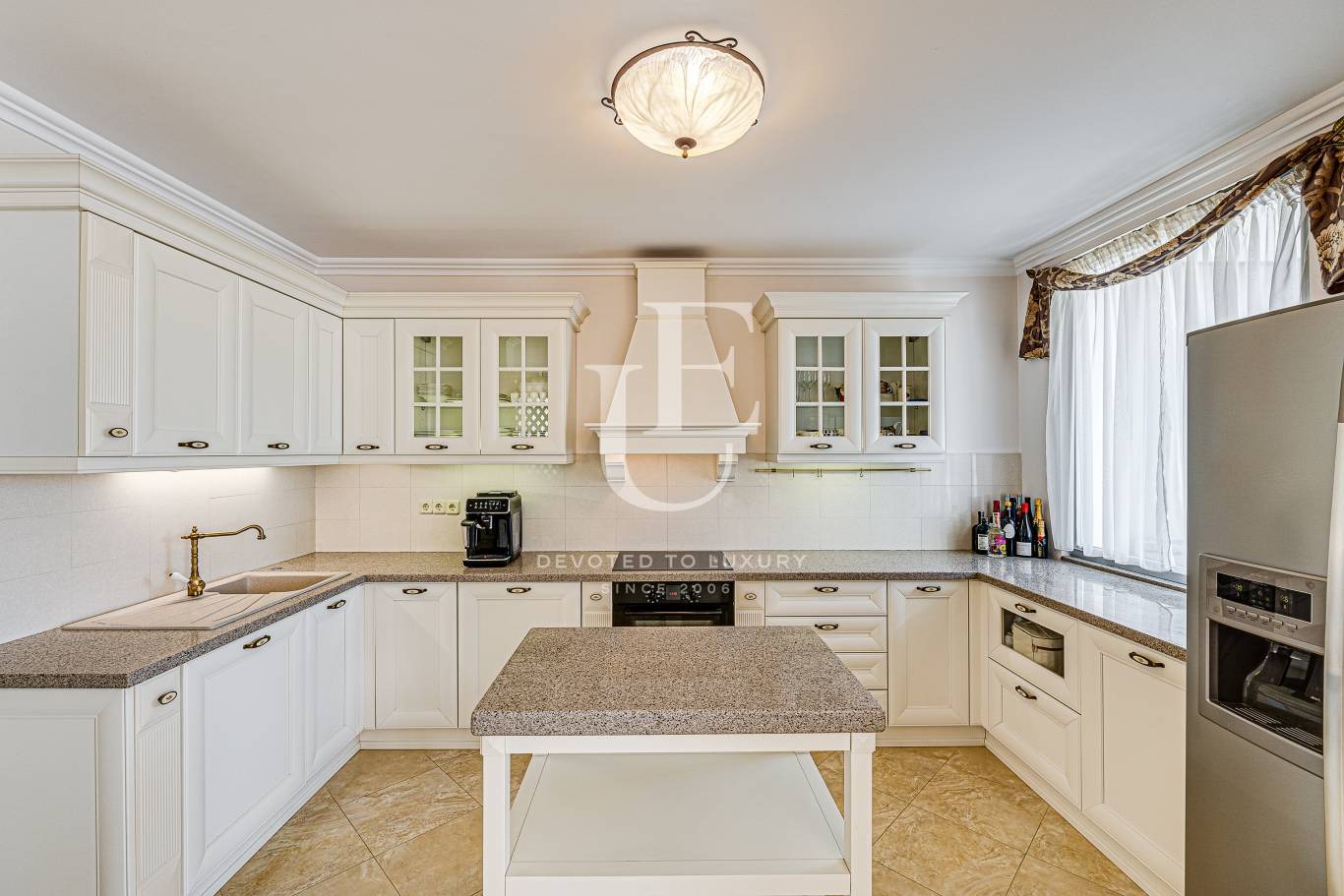 Разпределението на имота включва просторна и много светла дневна с южна панорама, трапезария, самостоятелна кухня с балкон, голяма родителска спалня с гардеробна стая и баня към нея, детска спалня с баня и тоалетна за гости Ref. ID:24738
