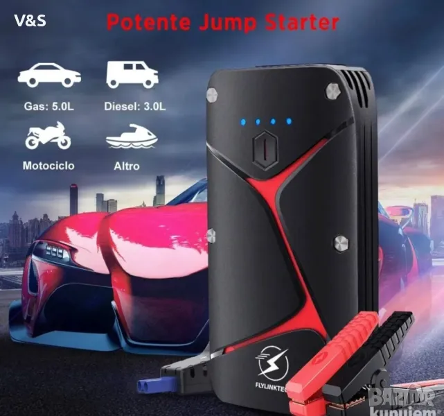 Мощен Стартер за кола, FLYLINKTECH 1000A Peak 15000mAh Преносим автомобилен акумулатор Стартер