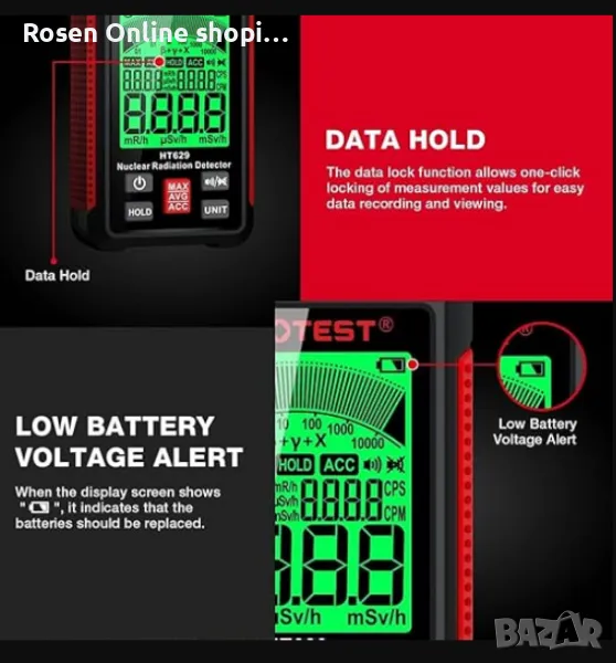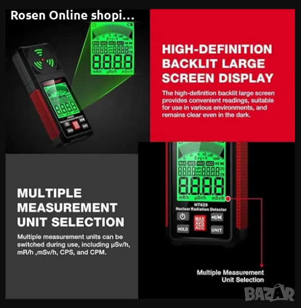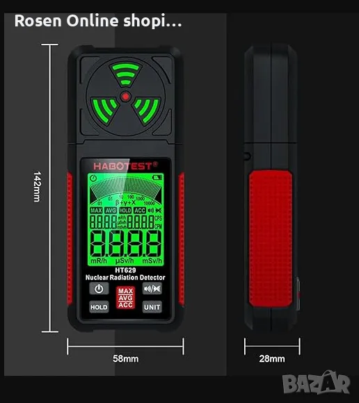 Детектор за измерване на радиация( Дозиметър ) HABOTEST HT-629 Geiger Detector X β γ-Ray Dosimeter