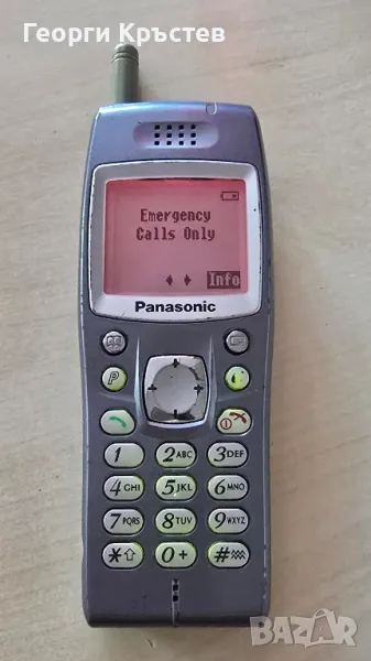 Panasonic GD93 - телефона се включва и работи, зарежда си батерията, но не мога да го тествам, липсват някой пластинки за СИМ, клавиатурата е ОК, дисплея е ОК, добър външен вид, без батерия и зарядно.