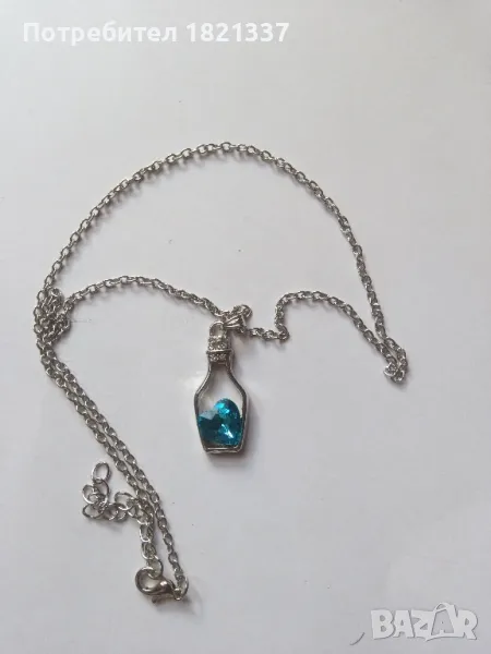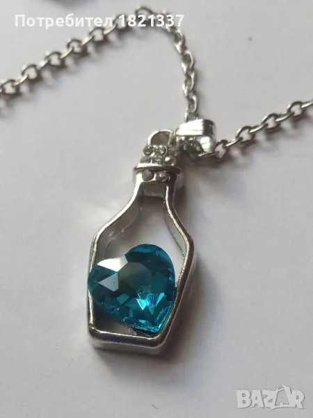 Колие с кристал. Цвят океанско синьо. Форма на сърце в бутилка.