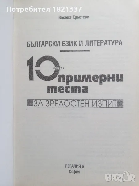 10 примерни теста за зрелостен изпит по български език и литература