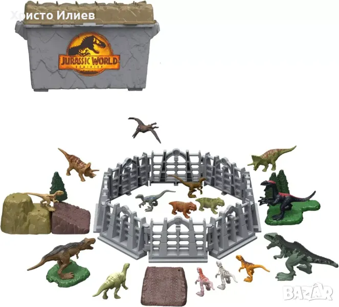 Този комплект се предлага в удобна кофа и има 30 части за изграждане на игрив Джурасик свят у дома. Използвайте частите от оградата, за да построите заграждение, така че динозаврите да не могат да избягат! С 15 включени фигурки на динозаври, включително Тиранозавър Рекс, Трицератопс и Велоцираптор и други, този комплект насърчава въображаемата игра, подобрява фините двигателни умения и повишава креативността. Кофата позволява лесно съхранение и пътуване, а капакът на кофата работи като допълнителна част за изграждане на света на динозаврите.