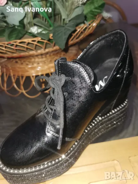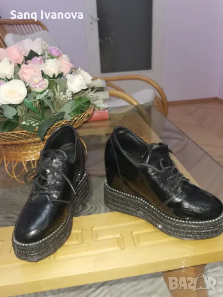 Черни обувки, размера е между 35 и 36,на платформа, много удобни! Носени са малко време, както се вижда почти нови.