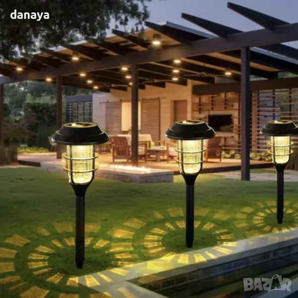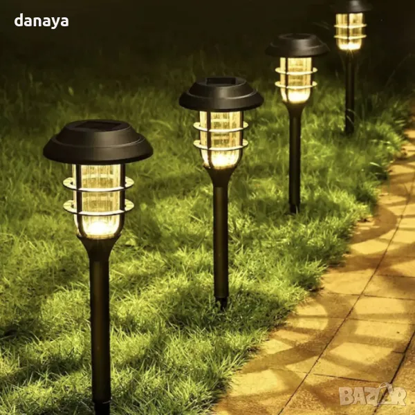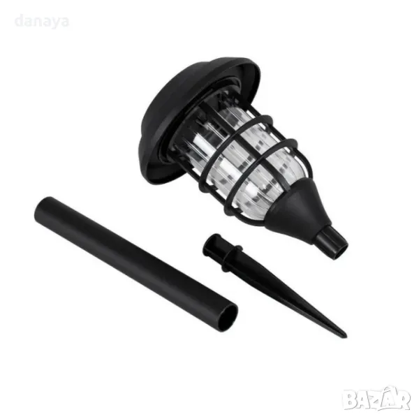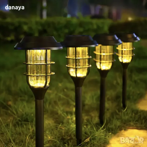 Соларна лампа декорация за градина, двор, балкон, тераса. През деня слънчевият панел в горната ѝ част трансформира слънчевата светлина в електричество и презарежда батерията. През нощта светлината може да се включва автоматично. Фенерът автоматично ще изключи осветлението и ще влезе в режим на зареждане при дневна светлина. Вградена в земята или монтирана на неподвижна опора, тази LED лампа има система за автоматично включване/изключване и освен красивия си външен вид, е изработена така, че да издържа на външни условия.