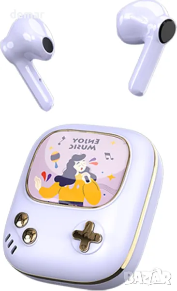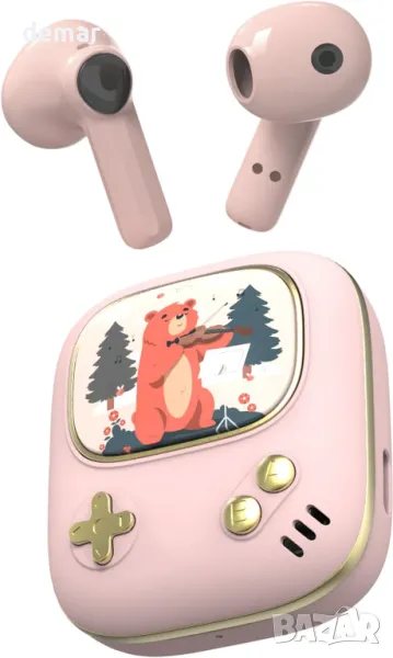 Ретро детски безжични Bluetooth слушалки поставяне в ушите ANCwear розови лилави грамофон