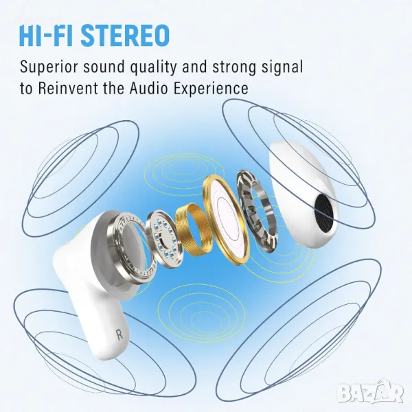 Насладете се на истинско стереозвук с технологията TWS, позволяваща индивидуално или едновременно използване на слушалки за потапящо аудио. Управлявайте без усилие записи и разговори с интуитивно сензорно управление за безпроблемно изживяване със свободни ръце. Добавете креативен щрих със стикери „Направи си сам“, за да персонализирате слушалките и калъфа според вашия стил. Усъвършенстваният Bluetooth 5.3 осигурява бързи, стабилни връзки с ниска консумация на енергия за удължен живот на батерията. Проектирани за комфорт през целия ден, ултра леките 3,5 грама слушалки осигуряват сигурно и ергономично прилягане, идеални за продължително носене по време на пътуване, пътуване до работното място или почивка.