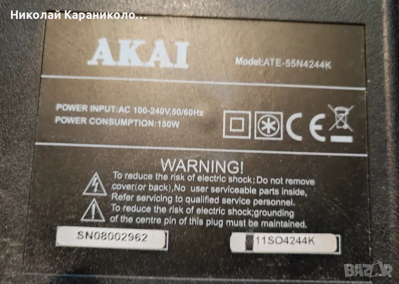 Продавам тв AKAI ATE-55N4244K за части по причина-счупена матрица/LSC550FJ06/BH-16355 55KD6DA/.Редовни съответно: