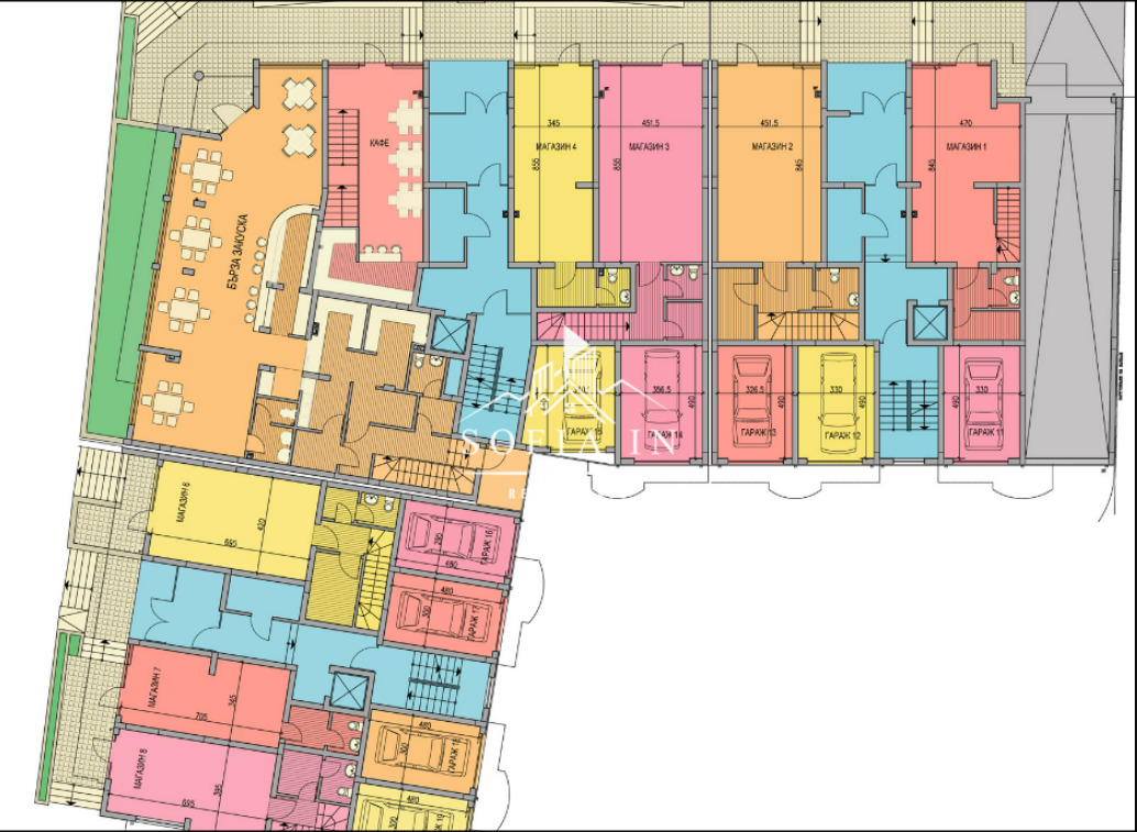 Общата площ е 152,92 кв.м. Търговска площ от 80 кв.м. е на кота 0.00 и на ниво сутерен.
