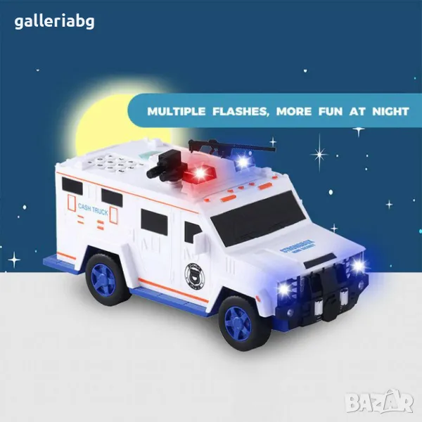 · Ярък дизайн на полицейски/паричен камион – харесва се много на децата