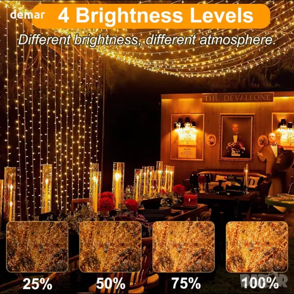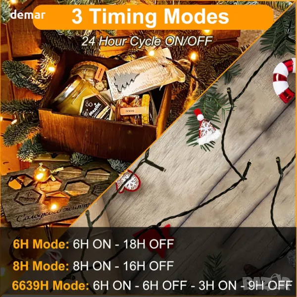 Тези 26,2 м приказни светлини с допълнителен 3 м захранващ кабел разполагат с 220 топли бели LED светлини (2700K) за уютна, празнична атмосфера, идеална за коледни елхи, спални, градини и събития. С 8 режима на осветяване и 4 нива на яркост (регулируеми чрез дистанционно), те предлагат разнообразни опции като постоянно сияние, вълна и избледняване. Три режима на синхронизиране и функция за памет автоматизират работата за безпроблемна употреба. Водоустойчивият дизайн IP44 гарантира издръжливост при различни атмосферни условия (щепселът се нуждае от защита). Безопасен и издръжлив, черният проводник с ниско напрежение (31 V) е лесен за боравене и се увива около декора.