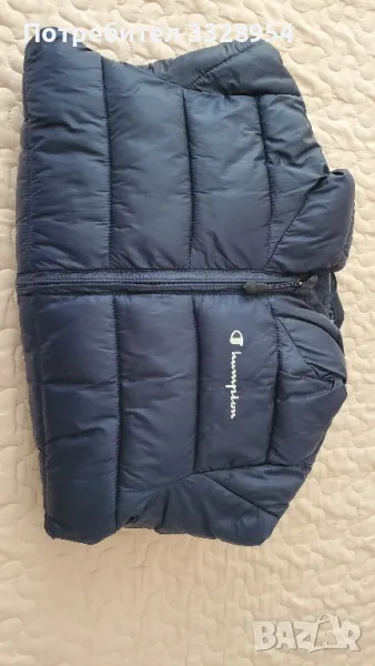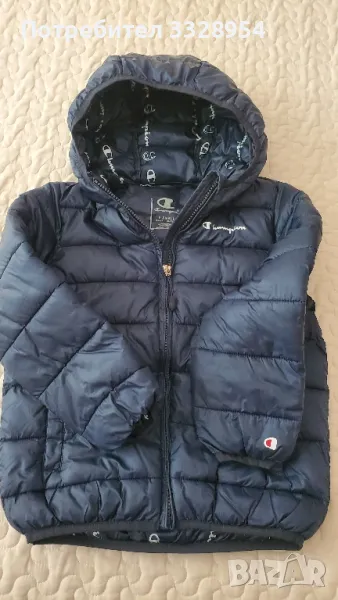 Якето е спортен модел тъмно синьо ватирано на марката Champion. Размера е x-sмall за 5/6 годинки
