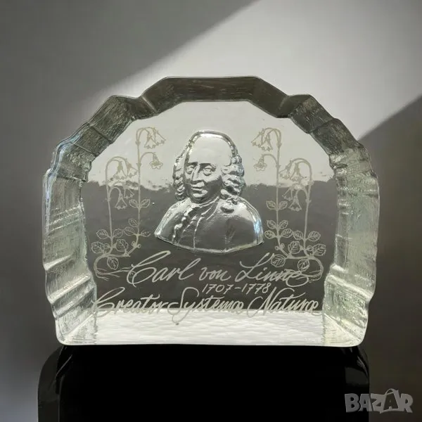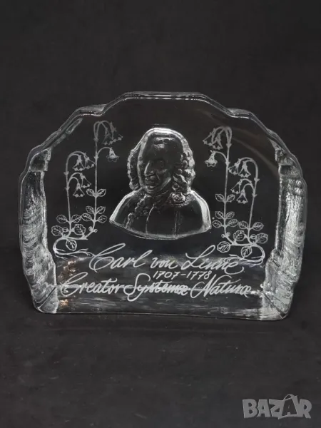 Винтидж преспапие от кристално стъкло "Carl von Linné". → Обява 47989910
