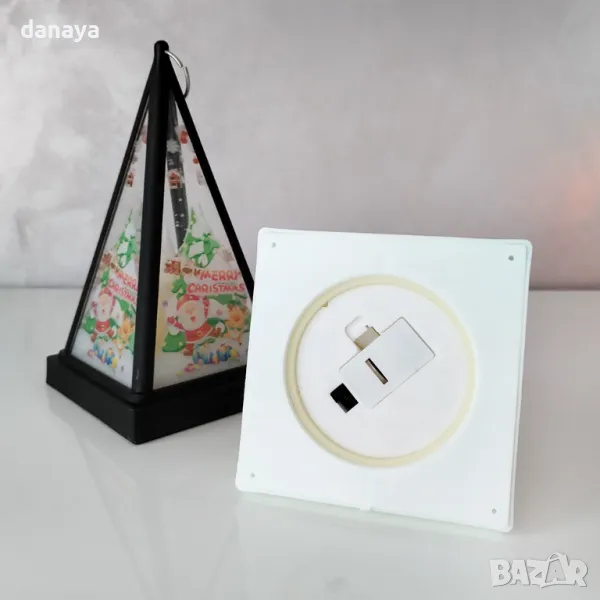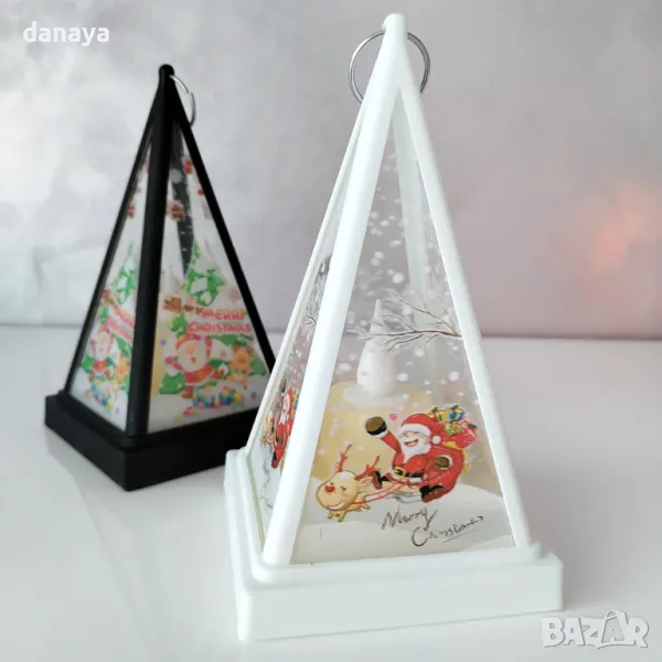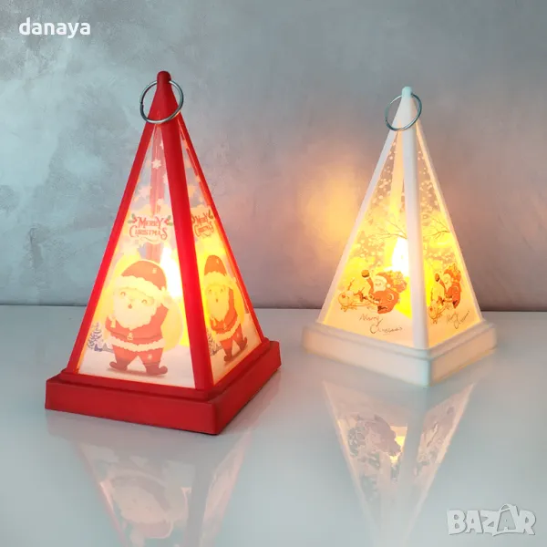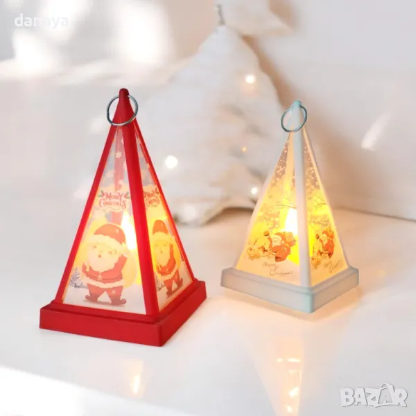коледен фенер с форма на пирамида. Коледна електронна свещ, светилник. Добавете уют и магия към празничната атмосфера с този декоративен светещ коледен фенер, вдъхновен от ретро лампите. В центъра му има малка електронна свещичка, която нежно примигва, създавайки реалистична имитация на истинска свещ с топла, мека светлина. С практична халка за закачане, този фенер пирамида е перфектен акцент за всяко пространство, където искате да внесете топлина и коледен уют.