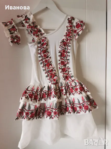 Рокля с етно мотиви , с прикачен тюл към полата, който може да се свали. Дължина от рамо 56 / 68 см,