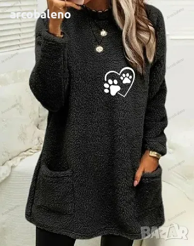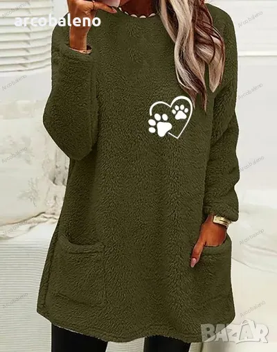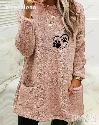 Дамски суичър с дълги ръкави и обло деколте с любовни крачета, 6цвята