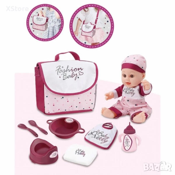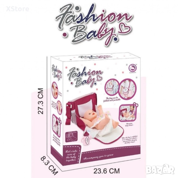 Аксесоари: Раница, бебешка бутилка, чиния, вилица, лъжица, пелена, шал, писоар;