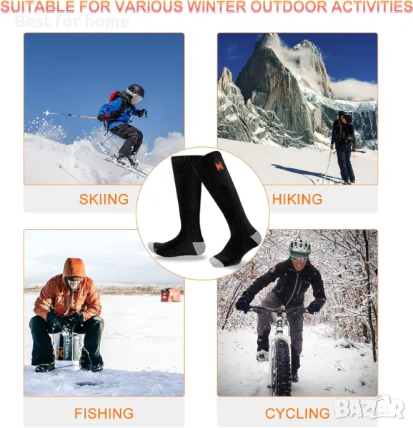 【Необходими за зимата】: С електрическите нагревателни чорапи можете да се насладите на риболов, къмпинг, сноуборд, лов, туризъм, ски, сноуборд и работа на открито и т.н. Зимните чорапи на батерии са внимателен подарък за вашите родители, приятели и семейство. Един размер за повечето хора.