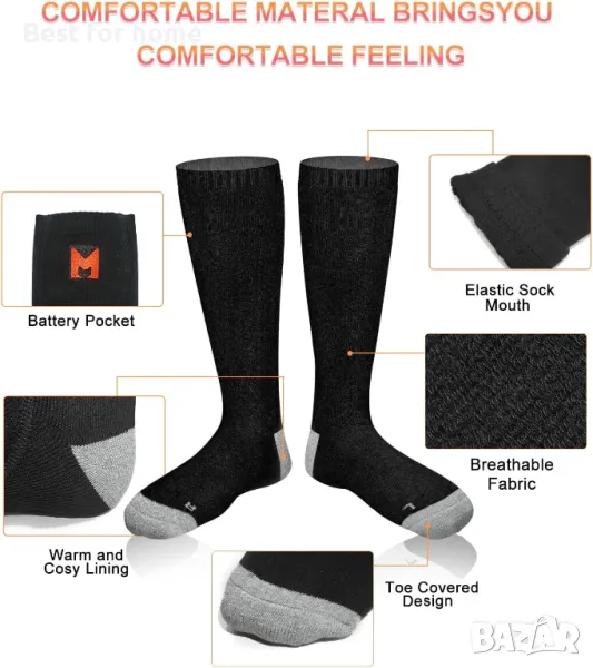 【Безопасност и защита на краката ви】: Нагревателните елементи на чорапите с нагряване на батерията, изработени от изолационен материал, без притеснения относно безопасността при нагряване. Удобната температура на отопление позволява на краката ви вече да не са студени и сковани през студената зима.