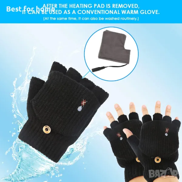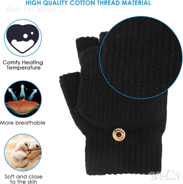 【ПРЕМИУМ МАТЕРИАЛ】 - Изплетени от качествени акрилни влакна, меки, удобни, топли и удобни за носене, един размер е подходящ за повечето хора. Може да се пере с вода, просто отстранете нагревателния лист. Нагревателният лист е залепен от вътрешната страна на ръкавиците чрез кука-n-примка.